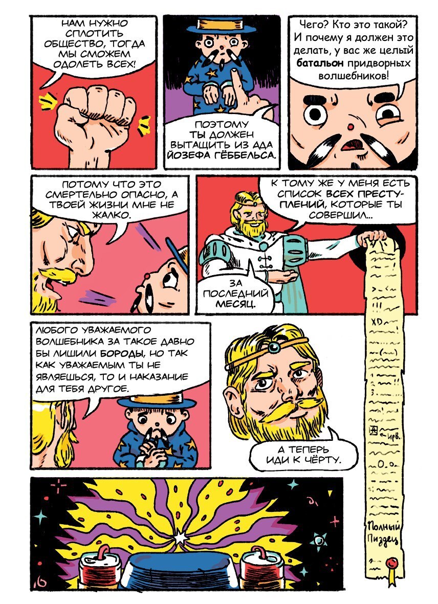 Ирвинг — злой волшебник на все 100%, и пусть вас не обманывают его румяные щёчки и глазки-бусинки. Сказочное королевство погрязло в коррупции и разврате, и единственный выход из этой плачевной ситуации, который находит король Гвалтус — призвать на помощь из ада верхушку третьего Рейха. И, конечно же, только Ирвинг способен справиться с этой задачей! И что здесь может пойти не так, спросите вы? Всё! Абсолютно ВСЁ! Стараниями Ирвинга и безумного короля, глупая неполиткорректная шутка переворачивает вверх дном не только королевство и жизненные устои героев, но и в буквальном смысле сам комикс. Приятного путешествия в безумно яркий и уморительно смешной волшебный мир Ирвинга!